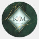 Un arrière - plan d'aquarelle dans les tons vert émeraude est surmonté d'une abstraite de lignes dorées fines et d'effets lumineux scintillants pour créer les pièces de cette belle suite mariage. L'autocollant de faveur de mariage présenté ici présente également un cadre en forme de losange dégradé pour tenir les initiales de la mariée et du marié et la date du mariage. Recherchez ID867 pour voir d'autres pièces et choix de couleurs pour cet ensemble.