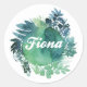 Aquarelle feuillage arrière - plan en bleu et vert avec le texte "Fiona" au centre