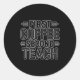 Sticker Rond First Coffee Second Teach Funny Teacher Shirt Back