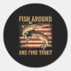 Sticker Rond Fish Around And Find Trout Funny Fishing Fishermen