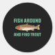 Sticker Rond Fish Around And Find Trout Funny Fishing Pun
