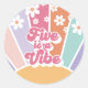 Sticker Rond Five est une Vibe Retro Sunshine Rainbow Daisy
