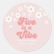 Sticker Rond Five est Vibe Retro Daisy Pink 5e anniversaire