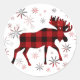 Sticker Rond Flacon de neige des plaids rouges de l'orignal de