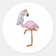 Sticker Rond Flamant rose comme Mariée au Mariage avec Voile
