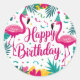 Sticker Rond Flamant rose d'amusement tropical Design d'anniver