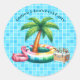 Sticker Rond Flamant rose de la piscine de palmiers