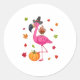Sticker Rond Flamant rose drôle Turquie Thanksgiving Citrouille