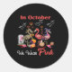 Sticker Rond Flamant rose En Octobre Nous Portons Pink Breast C