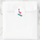 Sticker Rond Flamant rose en Snowboard avec Snowbaord