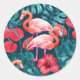 Sticker Rond Flamant rose et aquarelle du jardin tropical