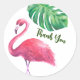 Sticker Rond Flamant rose et Merci Feuille tropical