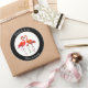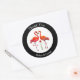 Sticker Rond Flamant rose mignon Merci Couple sur noir & blanc