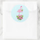 Sticker Rond Flamant rose rose à Santa Hat Noël Whimsical
