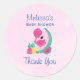 Baby shower (ou autre événement) merci autocollants. Conçu avec une jolie illustration d'un flamant rose avec pastèques et ananas. L'été et tropical.