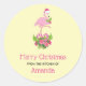 Sticker Rond Flamant rose rose en Santa Hat Whimsical Kitchen