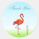 Sticker Rond Flamant rose rose et Merci Plante roseau