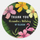 Coloré, lumineux, adorable, tropical, fleurs d'aquarelle, feuilles verts et flamants roses. Un autocollant de Merci d'anniversaire noir tendance et unique, avec nom et date personnalisés. Un choix parfait pour les anniversaires d'été.