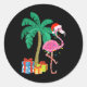 Sticker Rond Flamant rose rose Noël Palmier Tropical Xmas Fu