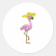 Sticker Rond Flamant rose sur la plage avec Casquette
