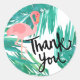 Sticker Rond flamingo rose merci à vous, feuilles tropicaux