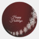 Sticker rond rouge rustique classique à la fête de Noël Crystal Flakes. Unique, beau, design élégant. Facile à personnaliser. Le style de police, la taille et les couleurs peuvent être changés. Des éléments correspondants sont disponibles.