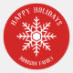 Ce étiquette autocollant rond flocon de neige a un arrière - plan rouge avec un simple design flocon de neige au centre avec Happy Holidays saluée en haut et nom de famille ci-dessous. Personnalisez-le avec votre propre salutation de Noël et votre nom de famille. Ou customisez cet autocollant plus en changeant la couleur arrière - plan à n'importe quelle couleur. Ces autocollants sont parfaits pour les enveloppes de cartes de Noël ou les cadeaux d'échange de cookies.