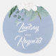 Sticker Rond Fleur blanche Dusty Mariage bleu