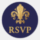 Fleur-de-lis RSVP. Or sur bleu foncé. La couleur Arrière - plan peut être modifiée. La plupart des images de la série "feuille d'or" ont une zone arrière - plan généreuse, donc, si vous customisez avec du texte ou de l'image, vous pouvez ajuster le cadre (rognage) pour convenir à de nombreuses idées.