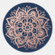 Sticker Rond Fleur Mandala rose or rose foncé bleu