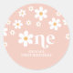 Un ! Autocollants de fête de 1er anniversaire inspirés par Retro avec marguerites de style 70's et polices et couleurs boho.