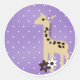 Sticker Rond Fleur mignonne violet avec Giraffe