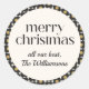 Ce charmant Sticker rond classique de Noël personnalisé présente un motif de fleurs pop rétro en noir et or.