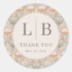 Cette élégante autocollante de mariage présente un design circulaire avec des teintes pastel douces de pêche, de bleu clair et de crème sur un motif floral répétitif. La mise en page est symétrique, mettant en valeur un cercle central avec une typographie serif gras pour les initiales "L | B" et un message "MERCI" gracieux, créant une esthétique vintage mais moderne. Les motifs floraux complexes et les lignes épurées évoquent un style Art nouveau, parfait pour ajouter une touche de sophistication à vos cadeaux de mariage ou invitations. Idéal pour célébrer l'amour et la gratitude, ce design combine l'élégance classique avec la simplicité contemporaine, ce qui en fait un choix polyvalent pour toute occasion spéciale.