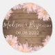 Sticker Rond Fleur rose Dahlia Mariage en bois rustique Date