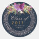 Beaux autocollants personnalisés d'obtention du diplôme avec les fleurs pourpres d'aquarelle d'étincelle et cadre rose de confettis de parties scintillantes d'or de faux sur un arrière - plan de marine. Si vous avez besoin de n'importe quelle aide customisant votre produit svp contactez-moi par mon magasin - par l'intermédiaire de cette page - et je serai heureux d'aider. J'ai employé l'illustration de : www.CreateTheCut.com. J'ai les invitations, l'affranchissement et les faveurs assortis dans mon magasin. Copie et pâté ce lien dans votre navigateur pour voir la pleine collection :