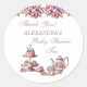 Célébrez la future maman avec ces stickers de remerciement personnalisés et élégants pour la Fête des mariées de thé. Ce design féminin présente des fleurs rose vif et lilas ornées d'une théière fantaisiste, d'un stand de gâteaux mettant en vedette de délicieux gâteaux à thé et d'une tasse à thé et d'une soucoupe décorées de motifs floraux délicats, le tout contre un arrière - plan blanc immaculé. Ces stickers charmants et élégants sont la touche parfaite pour votre Tea Party Baby Girl Shower "merci" faveurs.