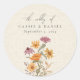 Un simple mais élégant autocollant rond classique de mariage conçu avec un bouquet de fleur sauvage de chute d'aquarelle peint à la main et un arrière - plan de lin donnant un look vintage fantastique. Parfait pour un mariage en plein air ou en jardin.