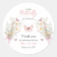 Célébrez l'arrivée d'une petite fille avec ce petit papillon rose Fleur sauvage floral Baby shower classique Sticker rond ! Ce design charmant comprend un papillon et des fleurs aux couleurs rose et verte est parfait pour un baby shower C'est une fête à thème fille. Customisez les détails sans effort pour créer l'invitation parfaite pour votre événement spécial.