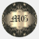 Sticker Rond Fleurs Abstrait Monogrammé Noir Et Or