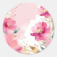 Sticker Rond Fleurs Aquarelles Roses Douces Avec Or