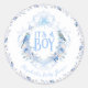 Fleurs bleues Crête Arc C'est un garçon Baby Shower Autocollant rond classique. Les articles assortis sont disponibles.