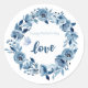 Fleurs bleues Dusty Aimer Élégant Sticker rond classique stickers floral bleu