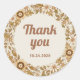 Ces stickers ou faveurs mariages tendance vous remercient d'une couronne de fleurs rétro design et de feuilles aux couleurs vintages et neutres comme le brun, le beige, l'or, le vert d'olive et la crème d'ivoire avec texte de style rétro.