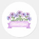 Sticker Rond Fleurs chic violet avec bannière Merci floral