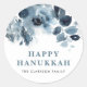 Sticker Rond Fleurs d'aquarelle bleu et feuillage Bonne Hanoukk