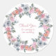 Sticker Rond Fleurs d'aquarelle rose et bleu Merci classique
