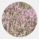 Longue vue d'un grand lit de fleurs cultivé de fleurs de bruyère rose pourpre fleurissant dans un grand lit de fleurs cultivé. Photo prise en Oregon par beau temps en mars 2011.