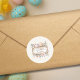 Ajoutez une touche de charme rustique printanier à vos cadeaux et décorations de Pâques avec cet autocollant rond classique représentant un panneau en bois « Joyeuses Pâques » entouré d'œufs pastel, de fleurs douces et de verdure. Les couleurs délicates et le style inspiré de la ferme en font un choix doux et polyvalent pour la saison. Parfait pour sceller les cartes de Pâques, décorer les sachets de friandises, étiqueter les cadeaux ou ajouter une touche festive aux agendas, cahiers et emballages. La forme ronde donne au design un aspect net et soigné qui fonctionne magnifiquement sur toutes sortes de surfaces. Ces autocollants charmants apporteront une atmosphère chaleureuse et accueillante de Pâques partout où vous les utiliserez.