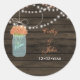 Bois rustique, feux à cordes pendants avec fleurs de corail dans un pot de mason mariage favoritisme autocollants et scellés d'enveloppe. Produits correspondants également disponibles